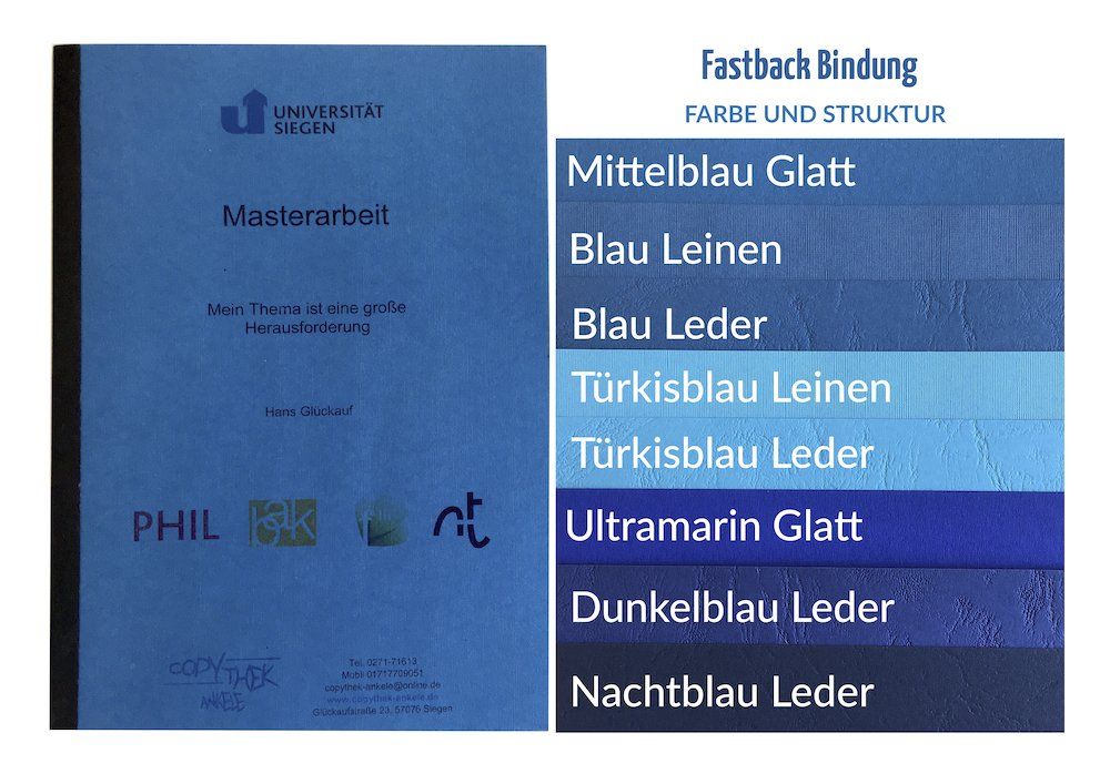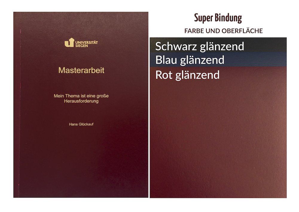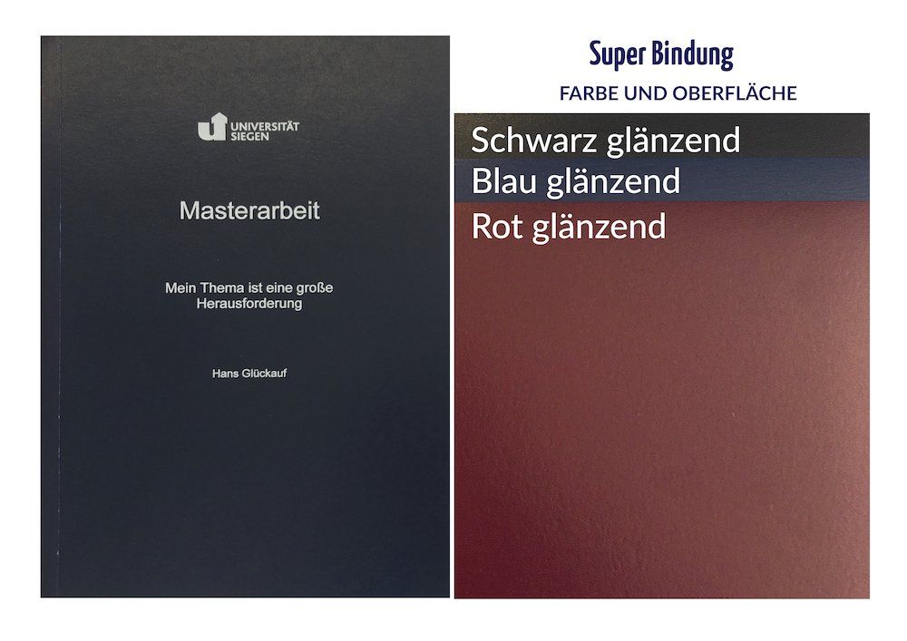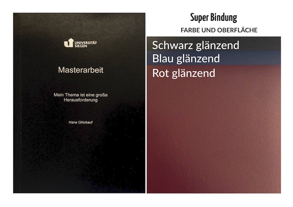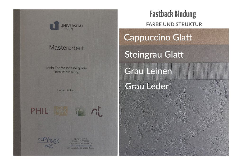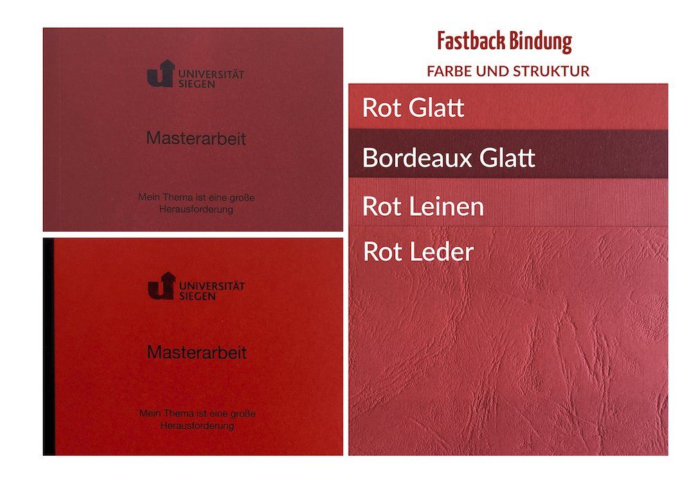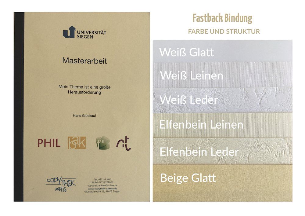 Fastback Bindung mit Fotokarton, Super Bindung mit Gold, Silber oder Weiss foliert und Premium Hardcover Buchbindung.